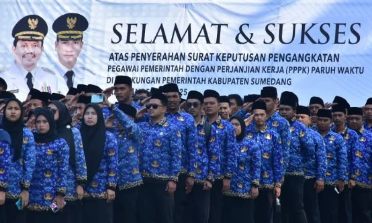 SUMEDANG, W+62.COM– Sebanyak 5.408 orang Pegawai Pemerintah dengan Perjanjian Kerja (PPPK) Paruh Waktu menerima Surat Keputusan (SK) pengangkatan dalam Upacara Peringatan Hari Ulang Tahun (HUT) KORPRI ke-54 Tahun 2025 di Lapangan Pusat Pemerintahan Sumedang (PPS) pada Senin Senin (1/12/2025).