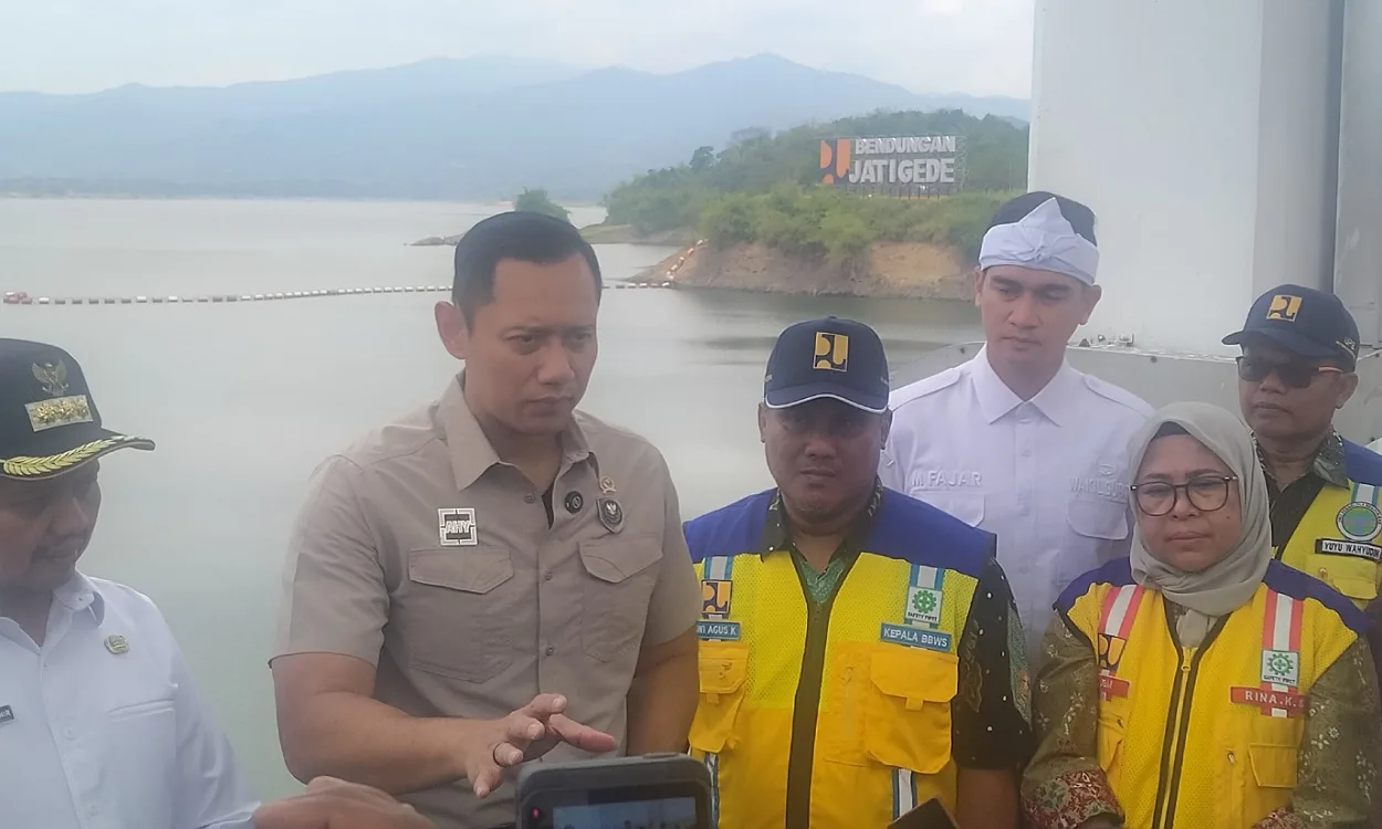 Menko Bidang Infrastruktur dan Pembangunan Kewilayahan Agus Harimurti Yudhoyono (AHY) saat meninjau lokasi Bendungan Jatigede Sumedang pada Jumat (19/9/2025)