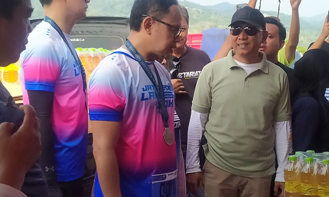 SUMEDANG, W+62.COM– Wakil Menteri Dalam Negeri, Bima Arya Sugiarto yang mengikuti Lomba Lari 10K di Festival Pesona Jatigede 2025, berkesempatan mengunjungi stand Gerakan Pangan Murah (GPM) Dinas Pertanian dan Ketahanan Pangan (DPKP) Sumedang pada Sabtu (20/9/2025).