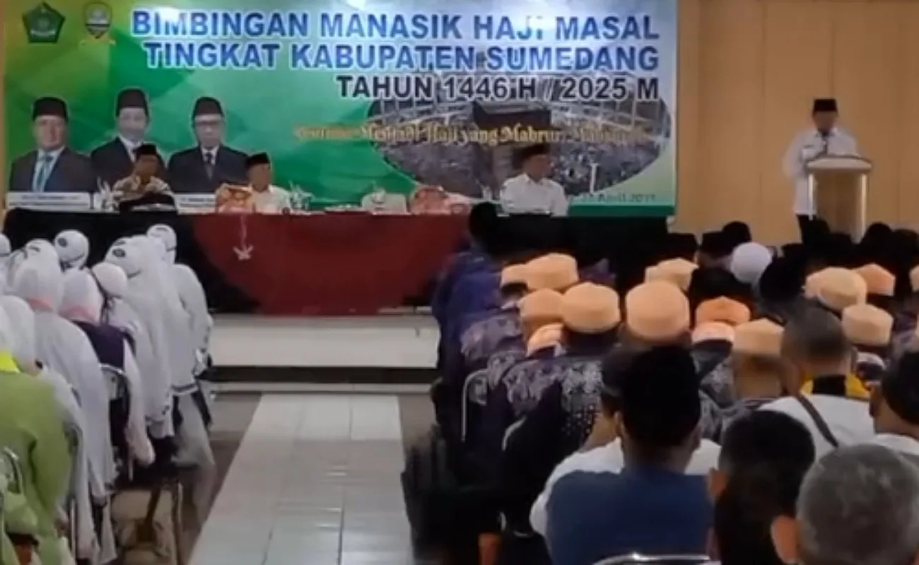 SUMEDANG, W+62.com- Bimbingan Manasik Haji Massal Tingkat Kabupaten Sumedang Tahun 1446 H/2025 M yang bertempat di Gedung Islamic Centre Sumedang, dibuka secara resmi oleh Bupati Sumedang, Dony Ahmad Munir pada (23/4/2025).