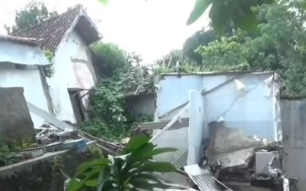 Selain menghancurkan bangunan, peristiwa ini mengancam keselamatan empat rumah lainnya yang berada di zona bahaya.