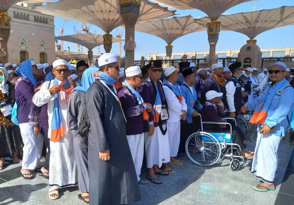Para jemaah mengenakan pakaian batik haji sebagai penanda kloter, lengkap dengan kartu identitas dan kartu Nusuk. Sejak pagi, para jemaah mulai mengantri secara tertib untuk masuk ke Raudhah Syarif, tempat yang diyakini sebagai salah satu taman surga yang berada antara mimbar dan makam Nabi Muhammad SAW.