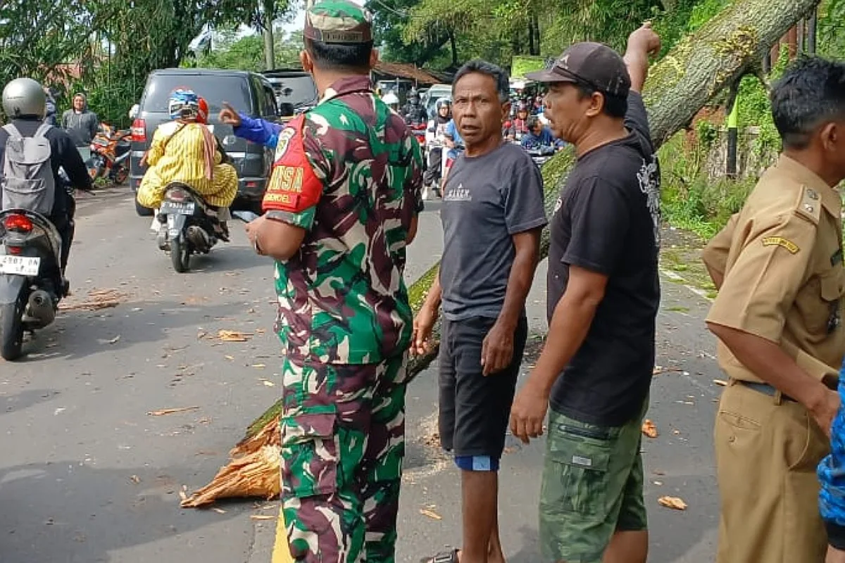 Adapun, tambah Babinsa Cigendel itu, untuk pohon tumbang sudah dievakuasi oleh tim gabungan dari Polres, Polsek, Koramil, BPBD serta Perhutani dan warga sekitar.