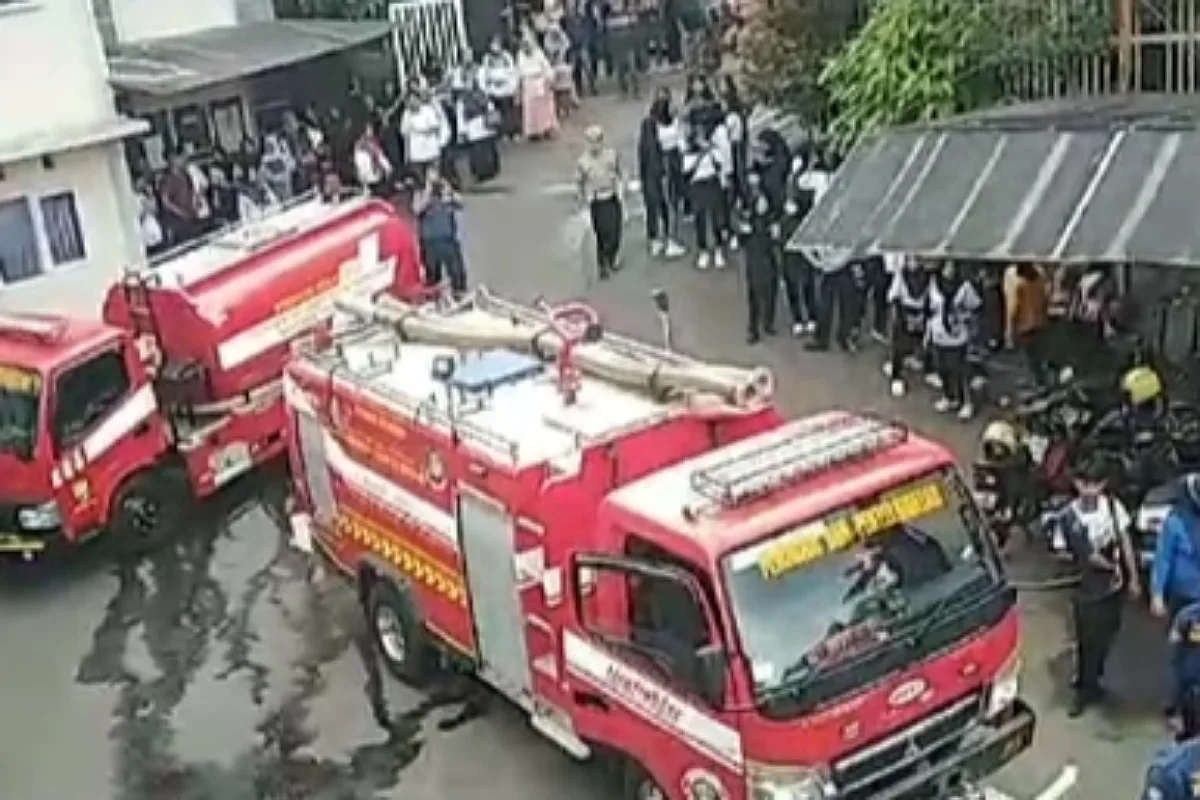 Dalam video itu, tampak sejumlah siswa dan guru berhamburan dari dalam ruang kelas, mengevakuasi diri menghindari area ruangan yang terbakar.