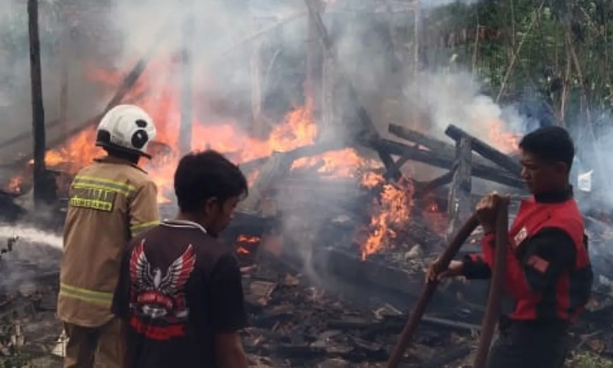 “Api sempat membakar bagian belakang bangunan dari bilik, tetangga Riki (35). Banyaknya material yang mudah terbakar, membuat petugas Damkar harus 3 kali mengisi air,” ujar Beni.
