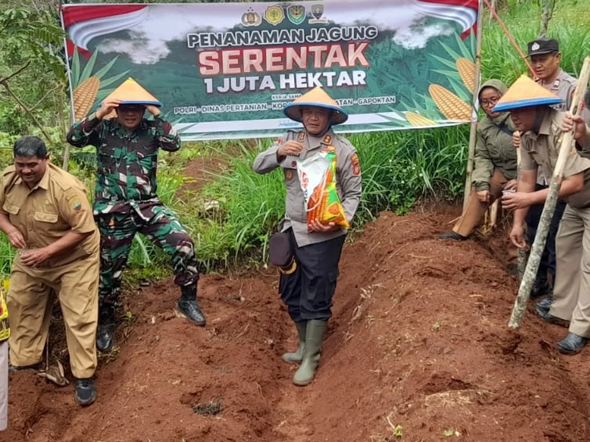 Di Kabupaten Sumedang misalnya, Kapolres Sumedang, AKBP Joko Dwi Harsono memimpin langsung gerakan penanaman jagung di Pasir Tegal Wangon, Desa Palabuan Kecamatan Ujungjaya Kabupaten Sumedang bersama Dinas Pertanian pada Selasa (21/1/2025).