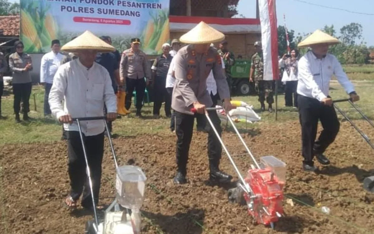 Tanam Jagung di Ponpes Darut Taubah Ujungjaya, Kapolres Sumedang: Wujud Nyata Kolaborasi Mencapai Swasembada Pangan Nasional