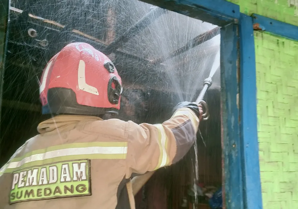 Upaya Cepat Damkar Tanjungsari Selamatkan Rumah Bilik Milik Mak Onah